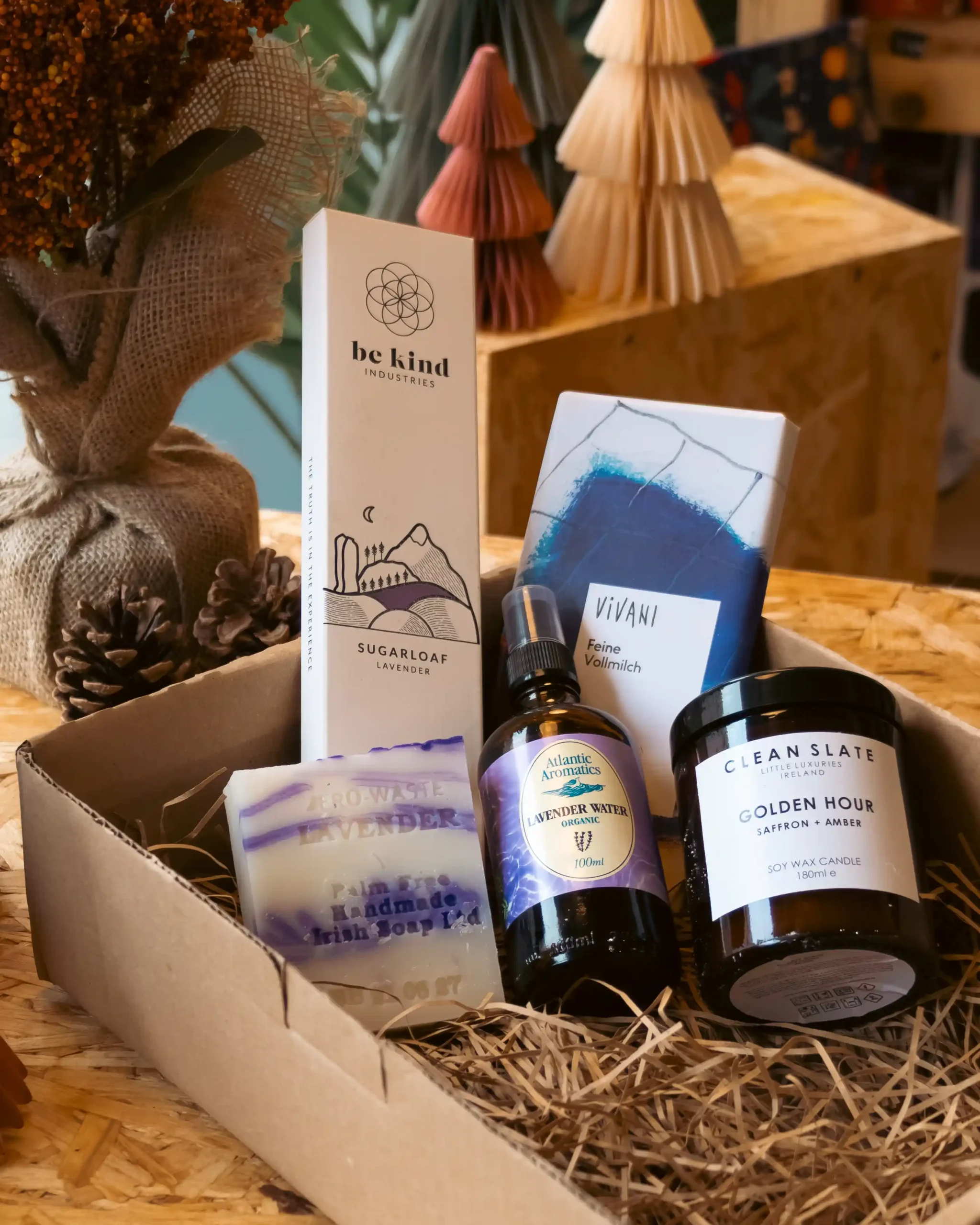 Choose from one of our festive themes or work with us to build something completely tailored. We'll handpick products that fit your budget and make sure everything's beautifully packaged and ready to impress.